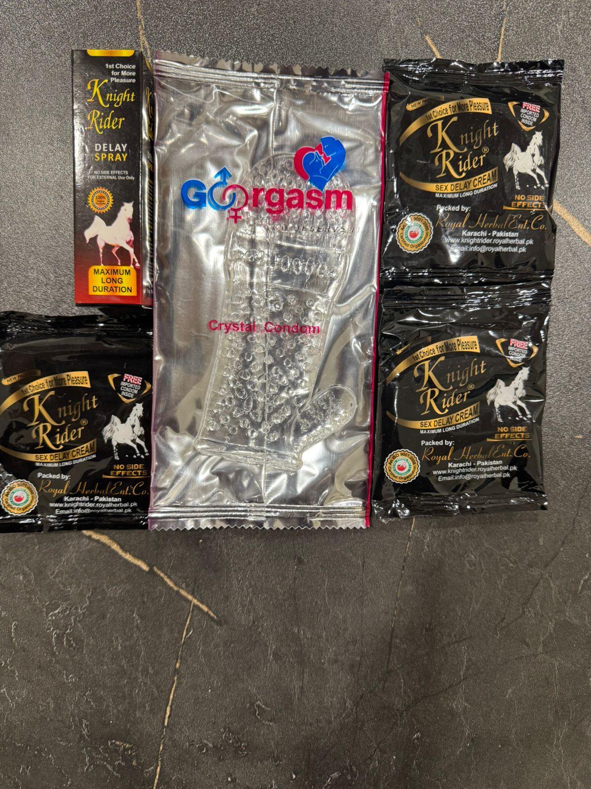 Knight Rider Delay Kit – Long Duration Cream, Spray & Crystal Condom Combo for Men