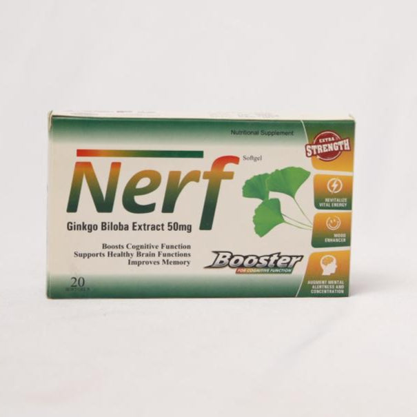 Nerf is a brain-boosting supplement formulated to support memory, concentration, and overall cognitive performance. Each softgel delivers 50mg of focused mental support in an easy-to-take form.